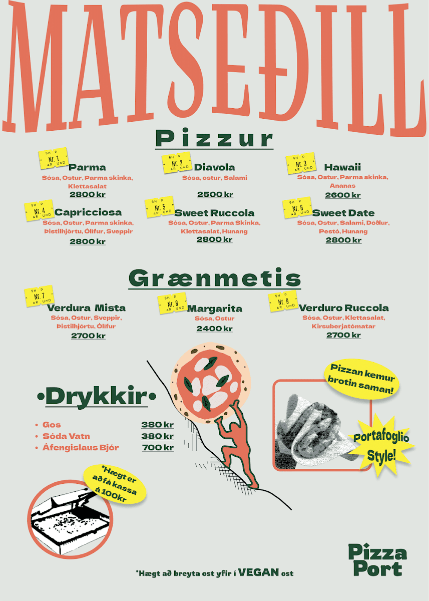 Introducing the menu at Pizza Port Rvk, a hidden gem located on Laugavegur 48, 101 Reykjavik. This charming food cart, nestled in a peaceful alley, specializes in authentic Neapolitan pizzas that truly delight. With each pie measuring 11-12 inches, you can expect a thin, delicious crust perfectly baked in a gas-fired oven at 400°C.